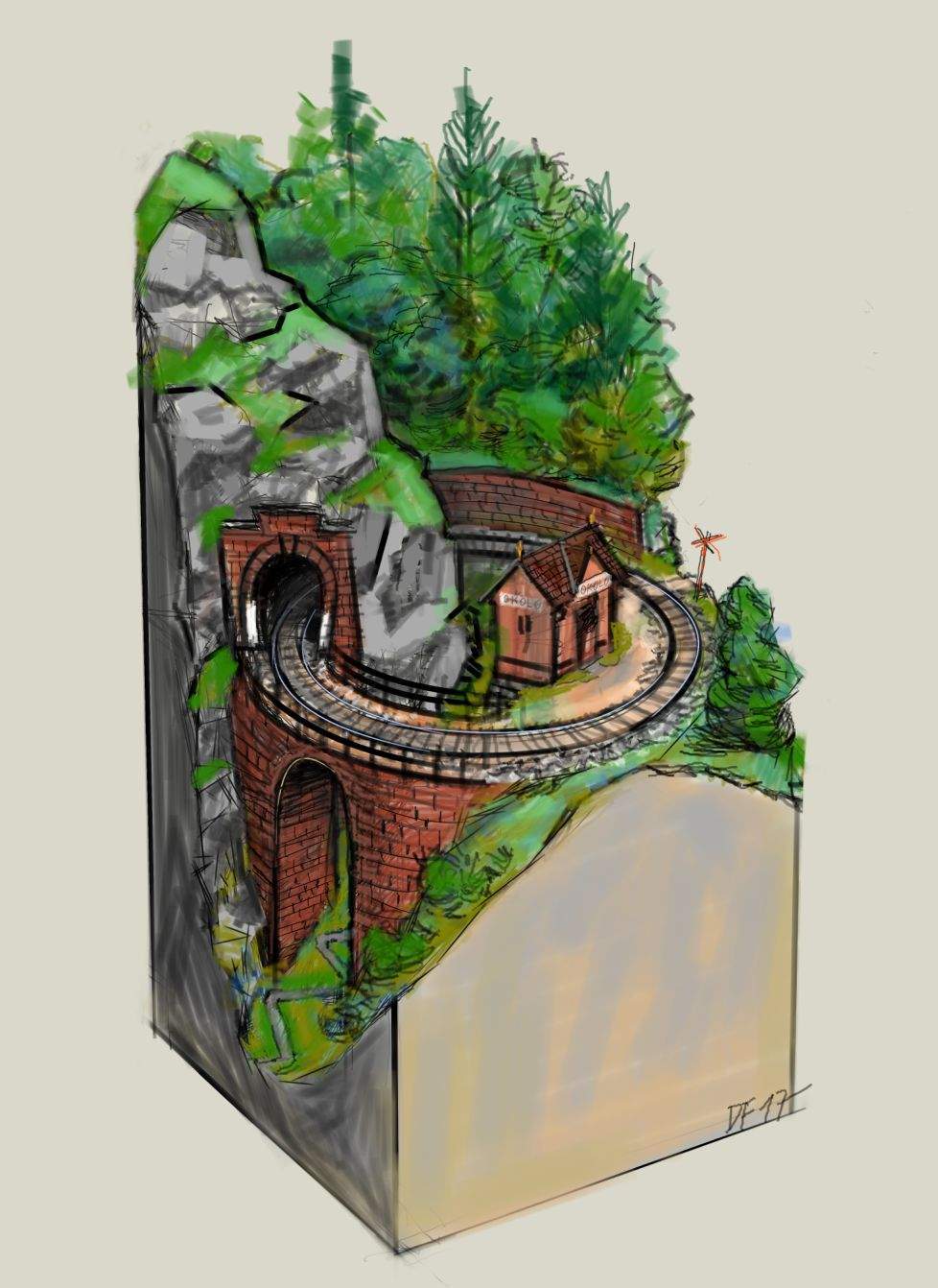 Ještě jsem se k tomuto moc nedostal. Jako námět jsem zvolil můj oblíbený tunel s následujícím mostem,