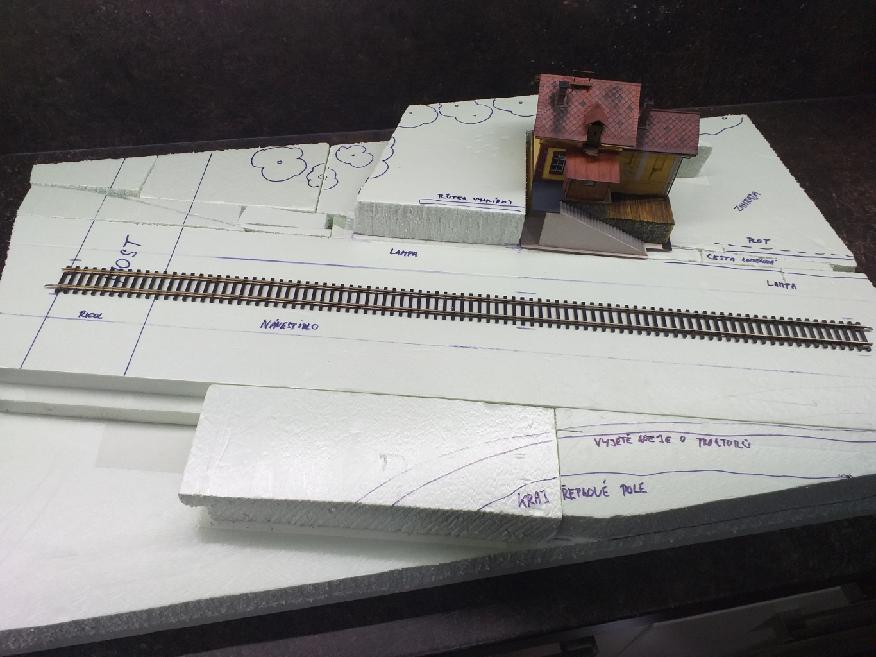 Námět je lokálka se strážním domkem, kterou přez most křižuje další trať. Základem bude styrodur a následný rám od truhláře ve tvaru krajiny. Domek od Igra model, most bude udělán ze stavebnice KB, lampy Dominik, a návěst od Něměčka. Kolem trati by mělo být malé koryto na odvod vody. Řepkové pole bude naznačovat okraj dioramy společně s vyjetými kolejemi od zemědělských strojů. Vedle domku se plánuje stará zarostlá zahrada z rozpadlím plotem a pumpou kolem kterého bude kamenitá cesta. Nahoře nad schody bude zábradlí s výhledem na trat a pod ním opěrkou Langmesser z níž budou udělány i mostní pilíře, ale z jiného vzoru. Zajímalo by mě jestli lampy v tomhle prostoru nejsou nesmysl a jaké návěstidlo by zde mohlo být, protože ohledně předpisů nevím vůbec nic