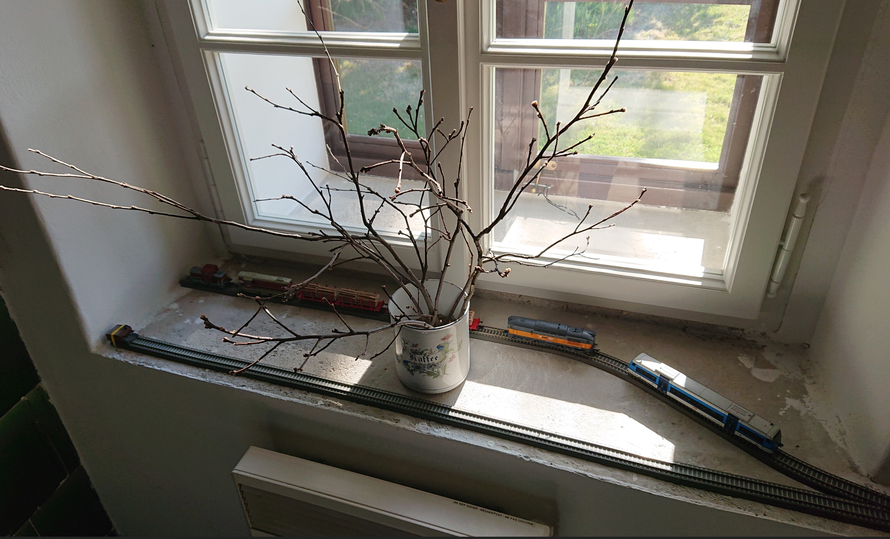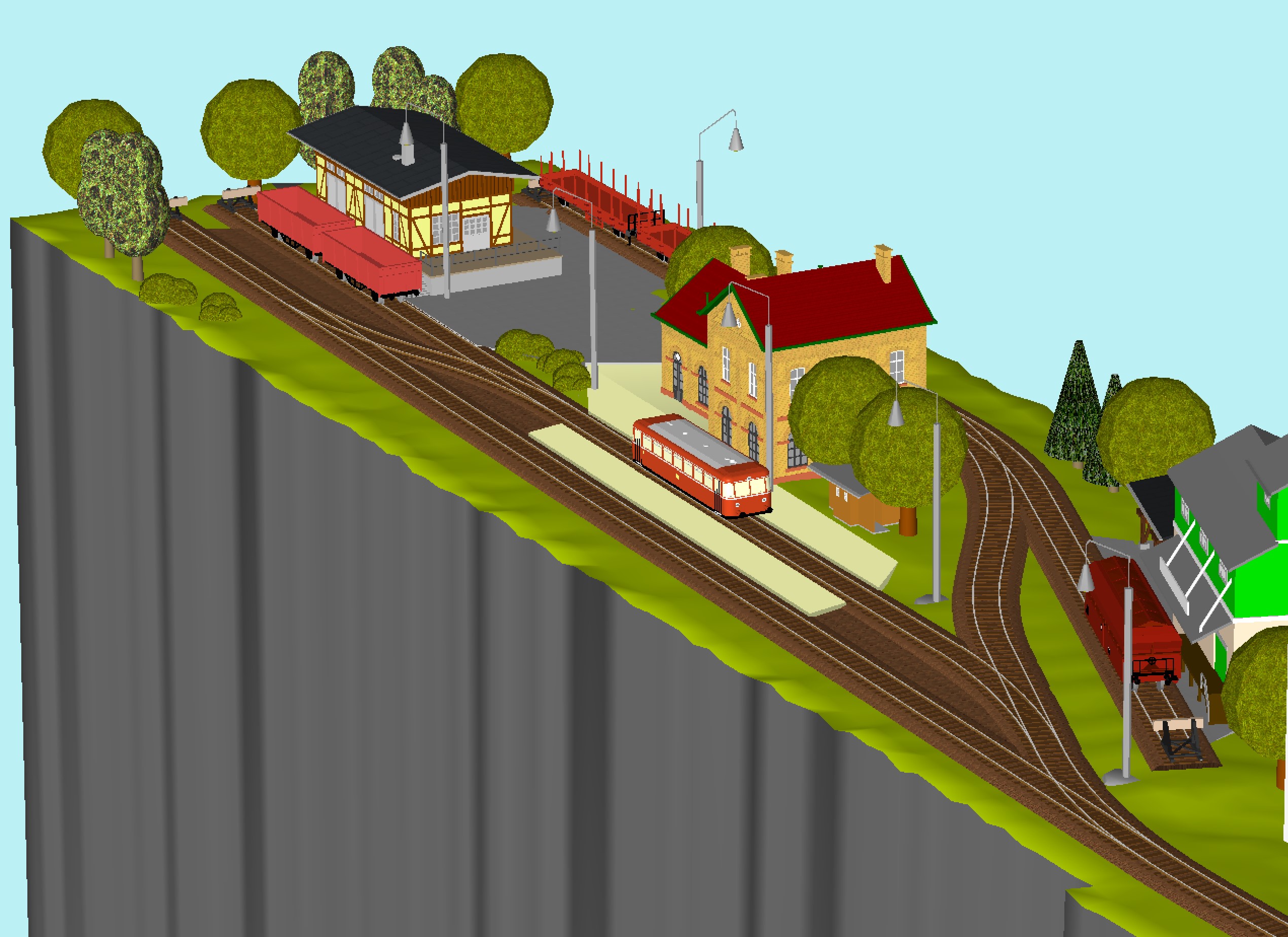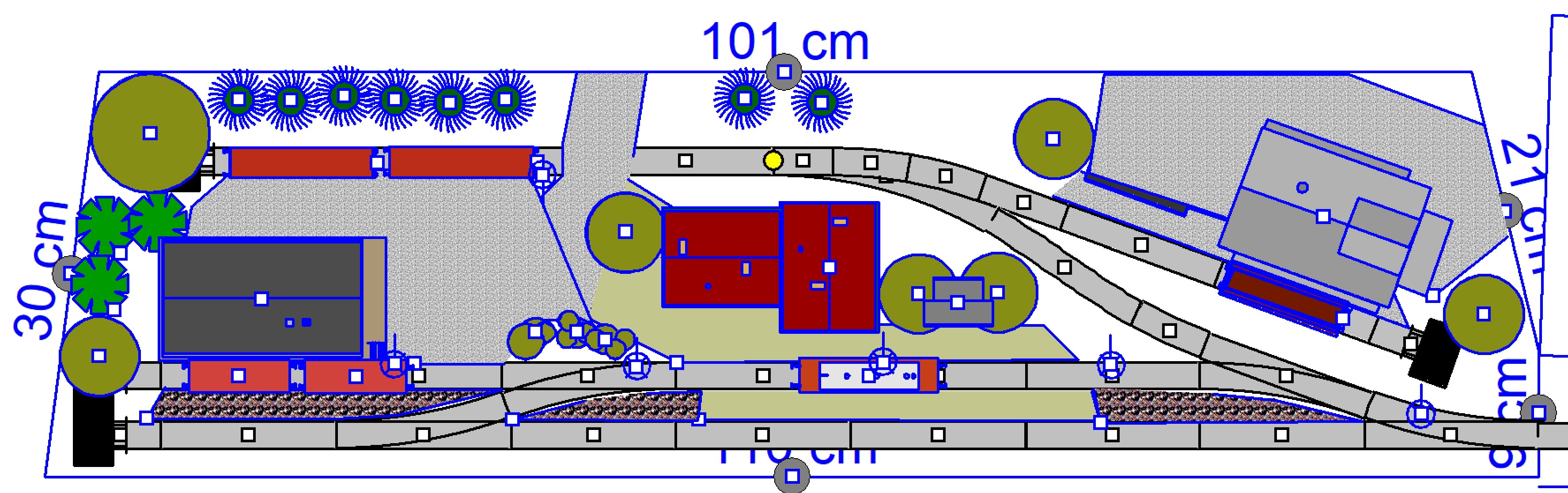 Dík za reakce. No, ta pravá část je právě dost krátká, okno je tam zkosené (kdo jste kdy viděli postavit stěnu kolmo do okna?) a na objíždění ve stanici, byť skryté, by to vyšlo jen tak, že by "to bylo vidět". Přesuvna mi proto přišla lepší, umožní vozy jakože odvézt pryč a vrátit se s jinými. Ona pravá část je vlastně jen rozšíření možností té levé, o vlečku víc. Můžu do stanice přivézt dva prázdné sypáky, zatlačit je k lomu, kde už stojí dva plné - tedy spojit je dohromady, vytáhnout do trati, plné přestavit vedle a prázdné zas pod násypky. Odjezd do stanice, objet soupravu. Mezitím může přijet motorák nebo i bangle pro vozy se dřevem, dopravní budou obě koleje. Odjezd. Na tříkolejnou přesuvnu schovám dvě nákladní "soupravy" a mimo přesuvnu odstavím dvě lokomotivy a dlouhý motorák (840). Případně se tam vejde i 810 a můžou do stanice zajíždět na střídačku. Ale jak píšu na webu, půjde o to, jestli bude přesuvna funkčně spolehlivá. Hlavně rozpojování, toho se bojím. Zkusím to napřed na prkně a pak se uvidí, jestli to zakrývat kopcem... Spousta radosti - nebo starostí