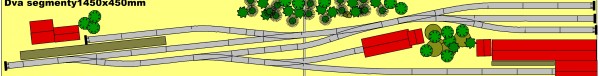 Střelec píše:Nešlo by to "zlomit" za roh (do L) vložením mezikusu s obloukem? Osobně už přes dva roky plánuju hodně podobnou segmentovku, ale na míň výhybek (2x3) a právě do elka na tři díly, protože je to do mý garsonky použitelnější. Jeden díl zastávka s nákladištěm a možností objetí soupravy, druhý kus oblouk a třetí kus šoupaliště. Epochy II-III, blíže nespecifikované Chebsko. Šoupaliště by mělo být použitelné i samostatně...