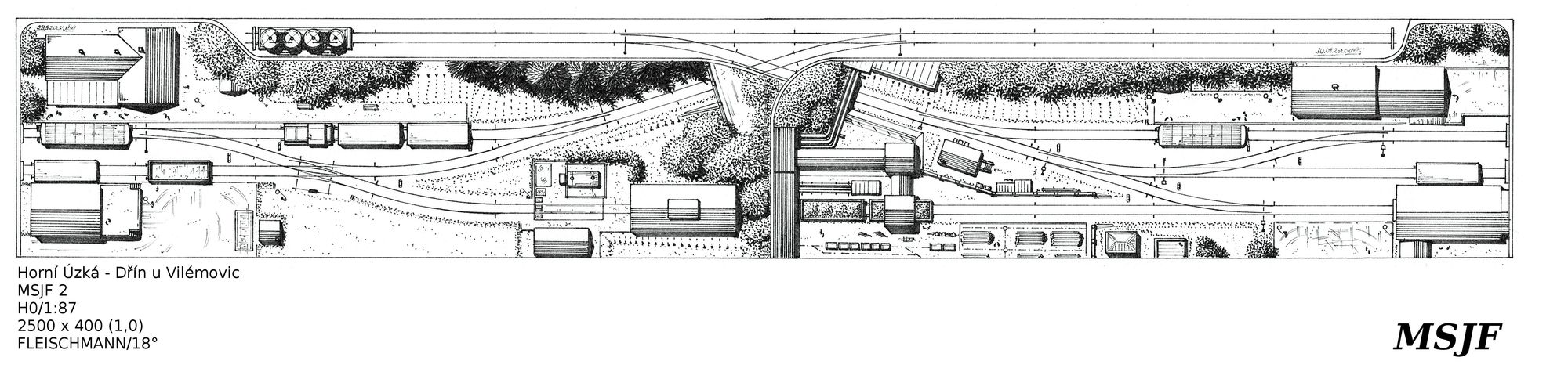 Námětem je osobní zastávka propojena se zastávkou s vlečkou. Nalevo osobní zastávka Čertová branka s dřevěnou čekárnou 11/H a s krátkým nástupištěm o délce cca 15,0 m. Pod kamenným mostem protéká větší říčka a vede pod ní polní cesta. V zastávce Dolní Úzká je napojena krátká vlečka pro nakládku štěrku (písku, hlíny, sklářského písku atd.) Zastávku s vlečkou tvoří strážní domek s podružnou budovou výkres LXXXVII/H, dřevěná čekárna 531/H a záchody 19/H. Nástupiště o délce cca 15,0 m a je vybavené lampami parkového typu.