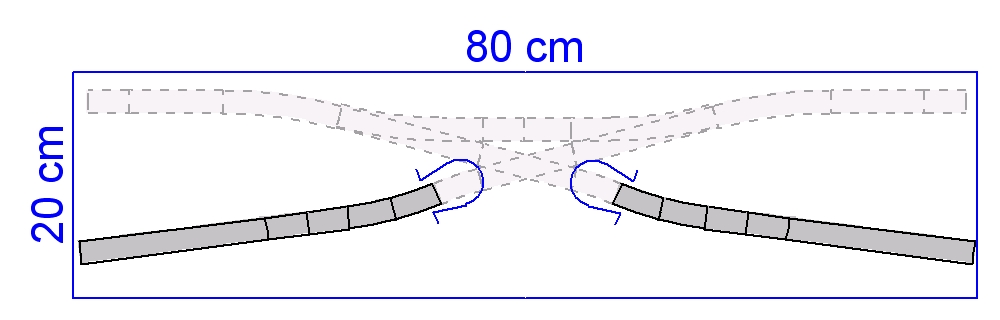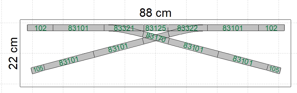 Moje minimalistické pojetí - šel jsem na co nejkratší délku - vloženým obloukem 7,5 a 5 stupňů kompenzuji "malý" úhel křížení od Tilligu...