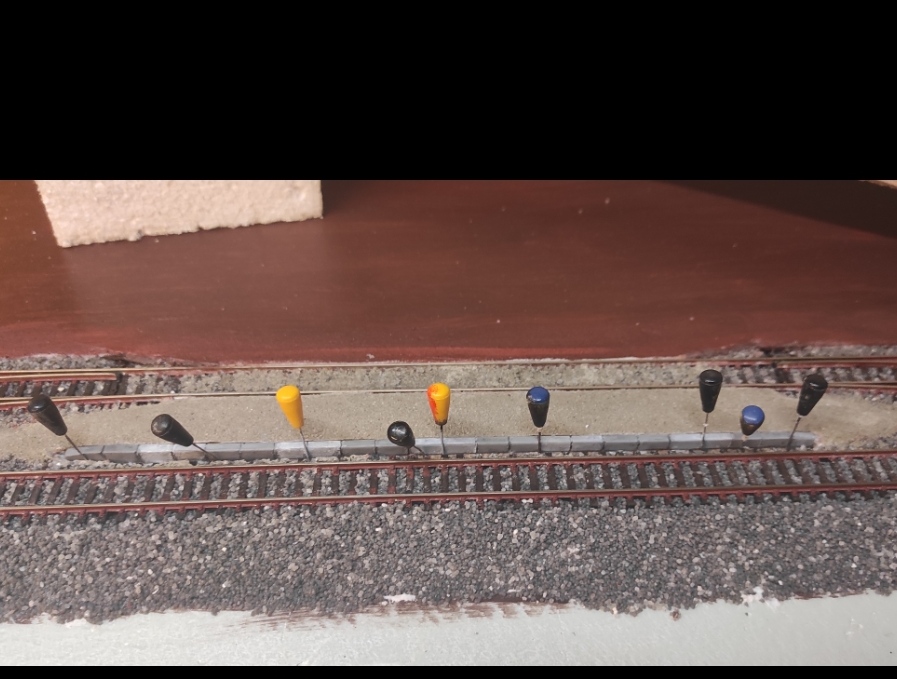 A nástupištní hrany Tischer již opracované (i s pilířky pro vyšší hrany) má JM Detail, k tomu jsou i snížené části pro přechody atd. A poslední věc - kameny (délky 1 metr) se natírají střídavě, jeden ano, jeden ne.