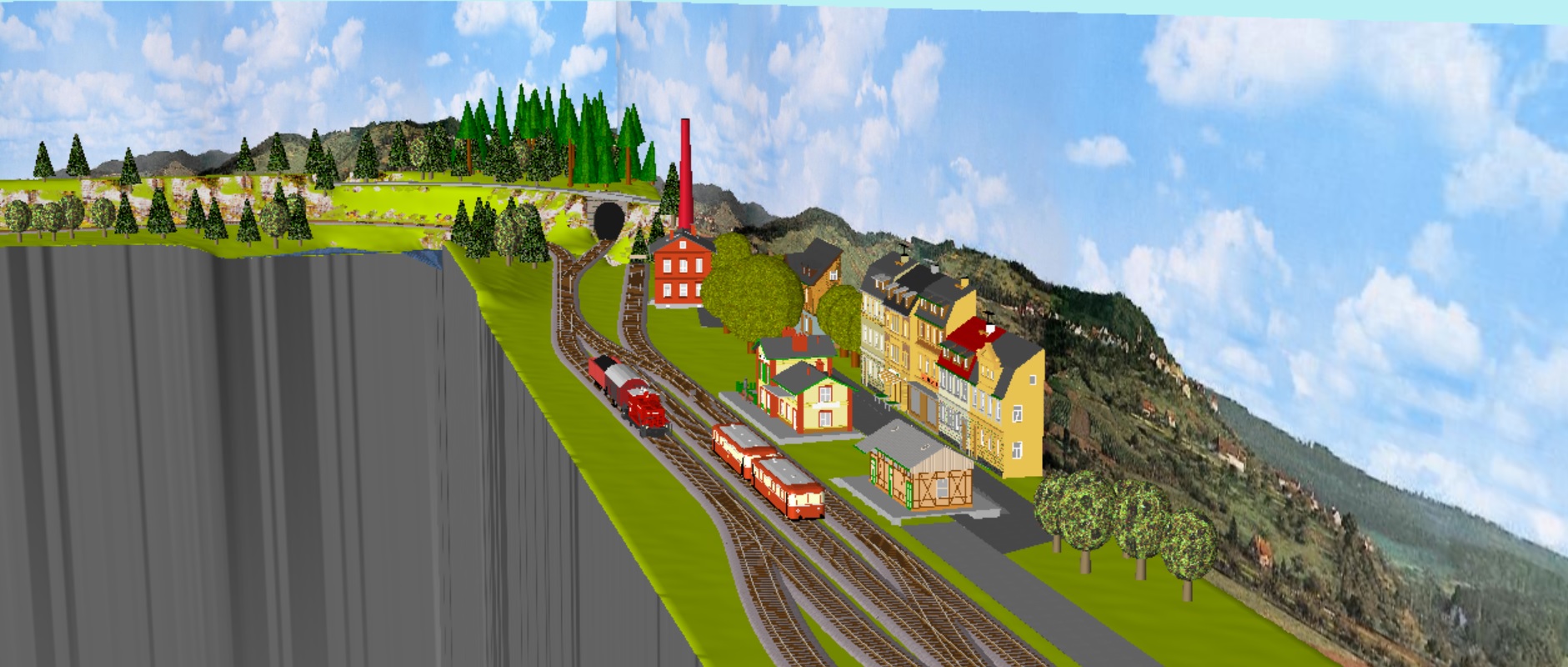 Tříkolejná stanice s odbočkou hned za zhlavím. Jedna kusá s volnou skládkou, malá vlečka do fabričky, remíza. Architektura volná, VB bude upravená stavebnice od IGRYJemnice), inspirována volně VB ve stanici Malá Skála. Epocha, víceméně volnou formou, někde po válce až 70léta. Stanice v malém městečku, víc přírody(v rámci možností) než zástavby.