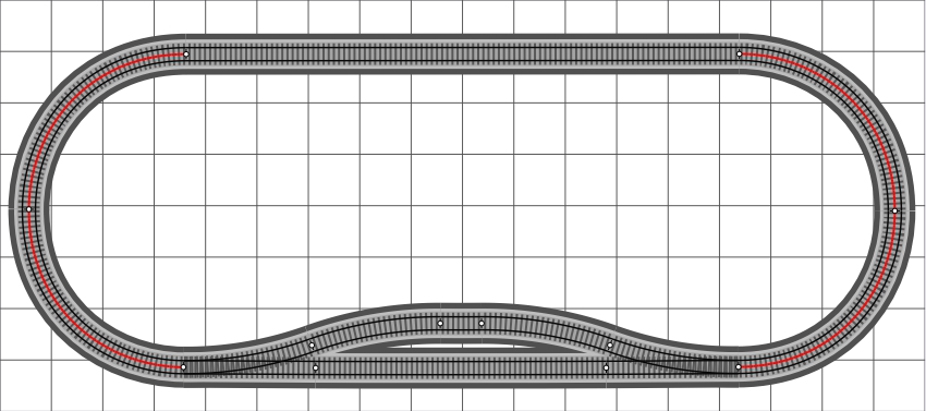 1. Klasika s možností křižování. Užitečná délka kolejí je cca 175 mm, tzn., že tam vykřižuješ sólo motoráky M 131.1, M 152.0/810 nebo dokonce s odřenýma ušima M 240.0/820. Nebo na vedlejší kolej pustíš sólo motorák a po hlavní koleji projede "dlouhý" (jak dlouhý, viz níže) nákladní vlak. Nebo můžeš na vedlejší kolej odstavit dva krátké dvounápravové nebo jeden 4nápravový nákladní vůz.