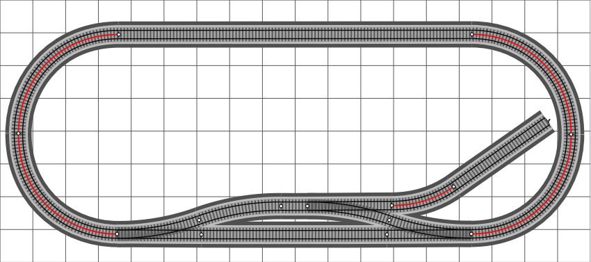 Tak jsem v Anyrailu nakreslil 3 varianty oválů, jak by asi mohly vypadat v TT na ploše 90x40 cm. Jeden čtvereček sítě = 5x5 cm.