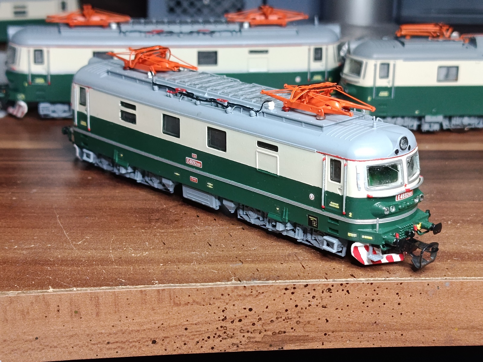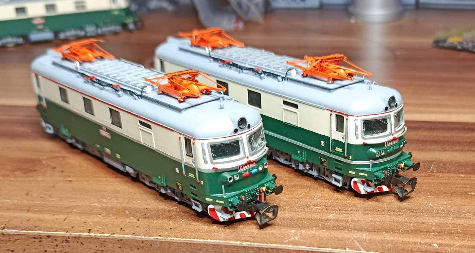 A teď to podstatné, kastle E469.2 a E469.3 v TT. Kolega si s lakem neskutečně vyhrál a udělal ho přesně jak jsem chtěl. Modely jsou bez osvětlení a na pojezdech MTB.