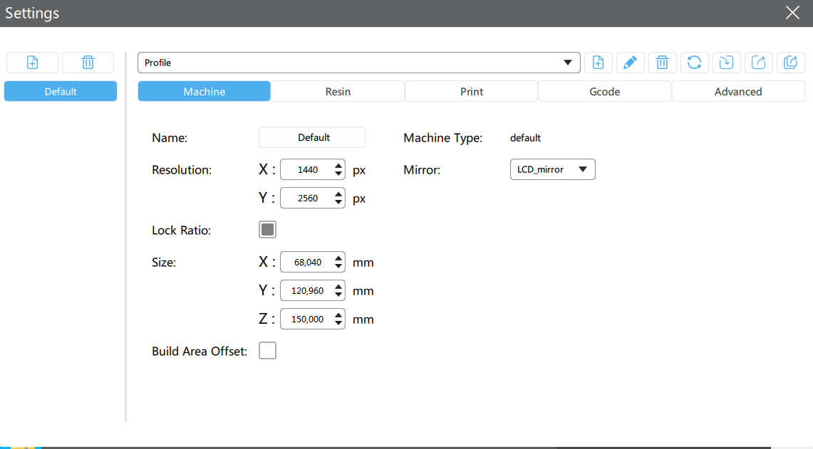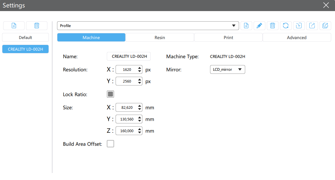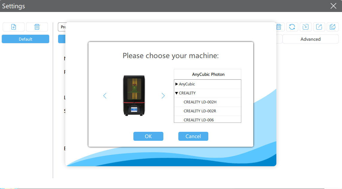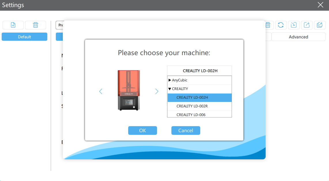 Přišla mi dom tiskánička Creality LD-002H i s tímhle SW Chitubox 1.71 - doufal jsem že to bude i s nastavením tiskárny