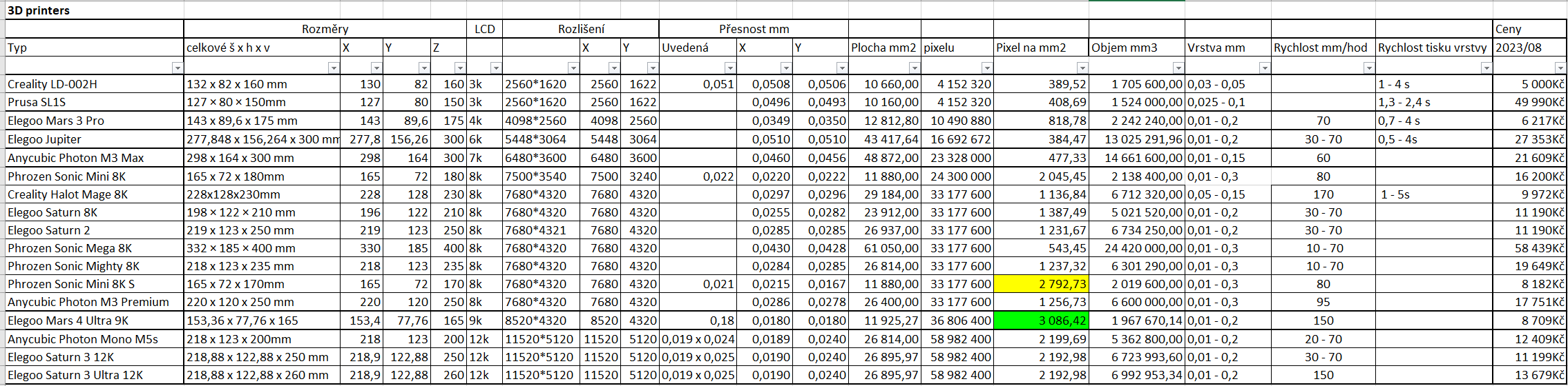 Aktuálně jsou nejlepší nabídky po kterých koukám asi Anycubic M5s (10`, 12K) a Creality Halot Mage 8K a to hlavně proto, že je na ně teď velká sleva .. ale tady těch +- 10` 8-12K* tiskáren za 300-400 USD je hodně (ještě třeba Elegoo Saturn 3 12K a Saturn 2 8K) a nemyslím že by nějaká nějak zásadně vyčnívala.