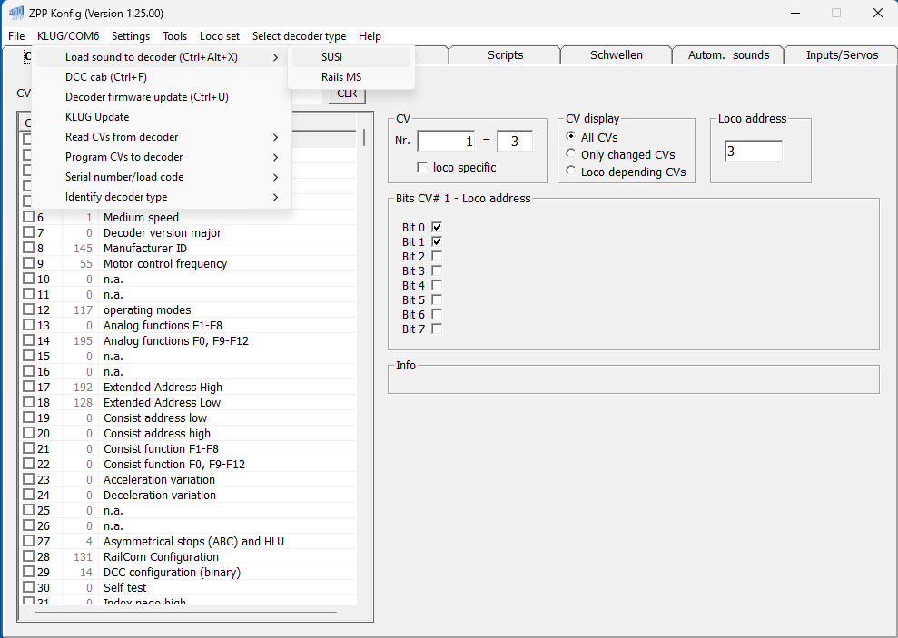 To je asi trochu zmatek v popisu. KLUG je do PC zapojený přes USB, a i když mám dekodér v patici v KLUGu, můžu si vybrat, jestli jej budu programovat "přes SUSI" nebo "přes kolej".