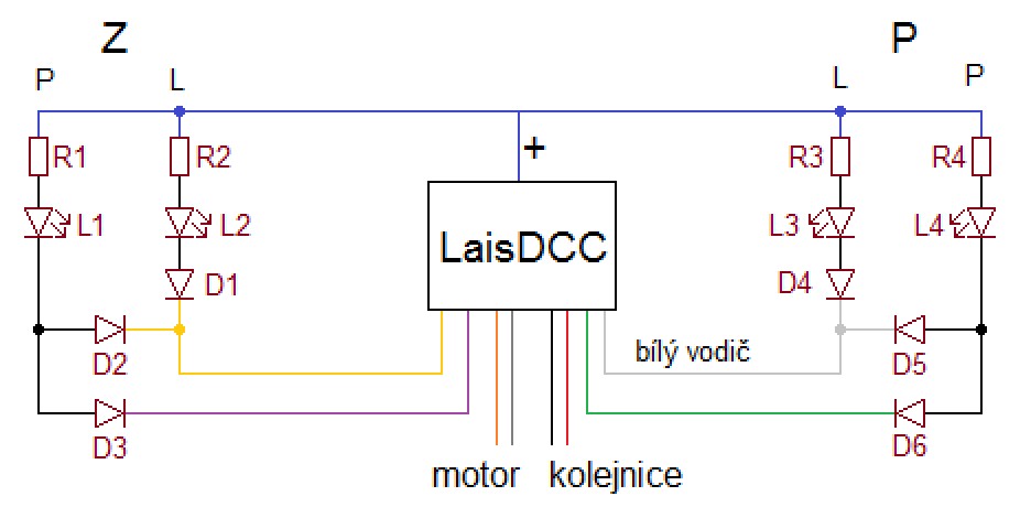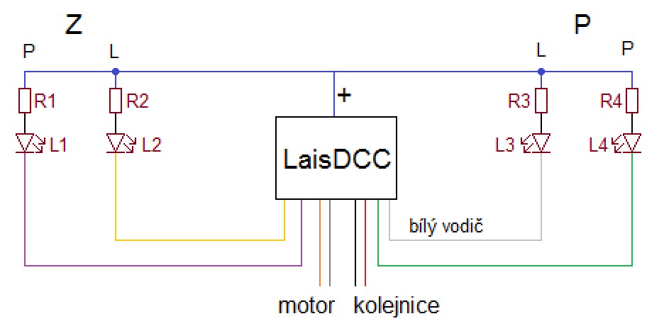 dekodér = LaisDCC 60021 (8pin+3 vodiče, NEM652)