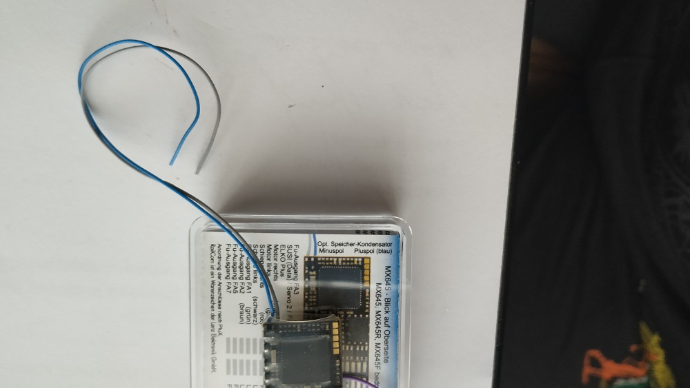 Po zastavění do pojezdu a modelu se mi stalo, že nesvitilo ani jedno osvětlení, jinak zvuk a jízda ok. Řekl jsem si, asi vadný kus, po cca 8mi letech asi druhý tak ok. Zkusil jsem druhý a to samé. Až při bližším zkoumání a měření výstupů jsem zjistil, že je přehozený plus a mínus pro kondenzátor.
