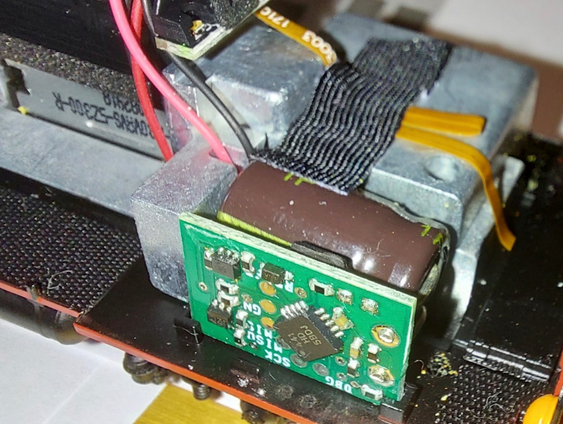 Původní konektor NEM652/8PIN pro ZIMO dekodér MX645 je ustřižen a dekodér je kompletně dodrátovaný podle doporučeného zapojení katalogu ZIMO, takže se využívají již všechny výstupy FA+SUSI. Pro vlastní připojení dekodéru již jen s drátovými vývody jsou zde tedy jen pájecí plošky. O tištěných spojích pro instalaci ZIMO zvukových dekodérů s paticí MTC21 aj. v tomto zapojení zatím neuvažuji.