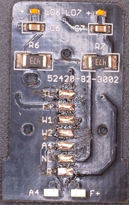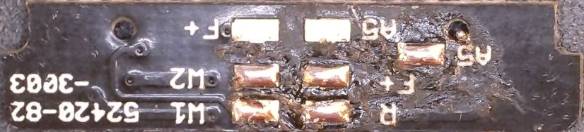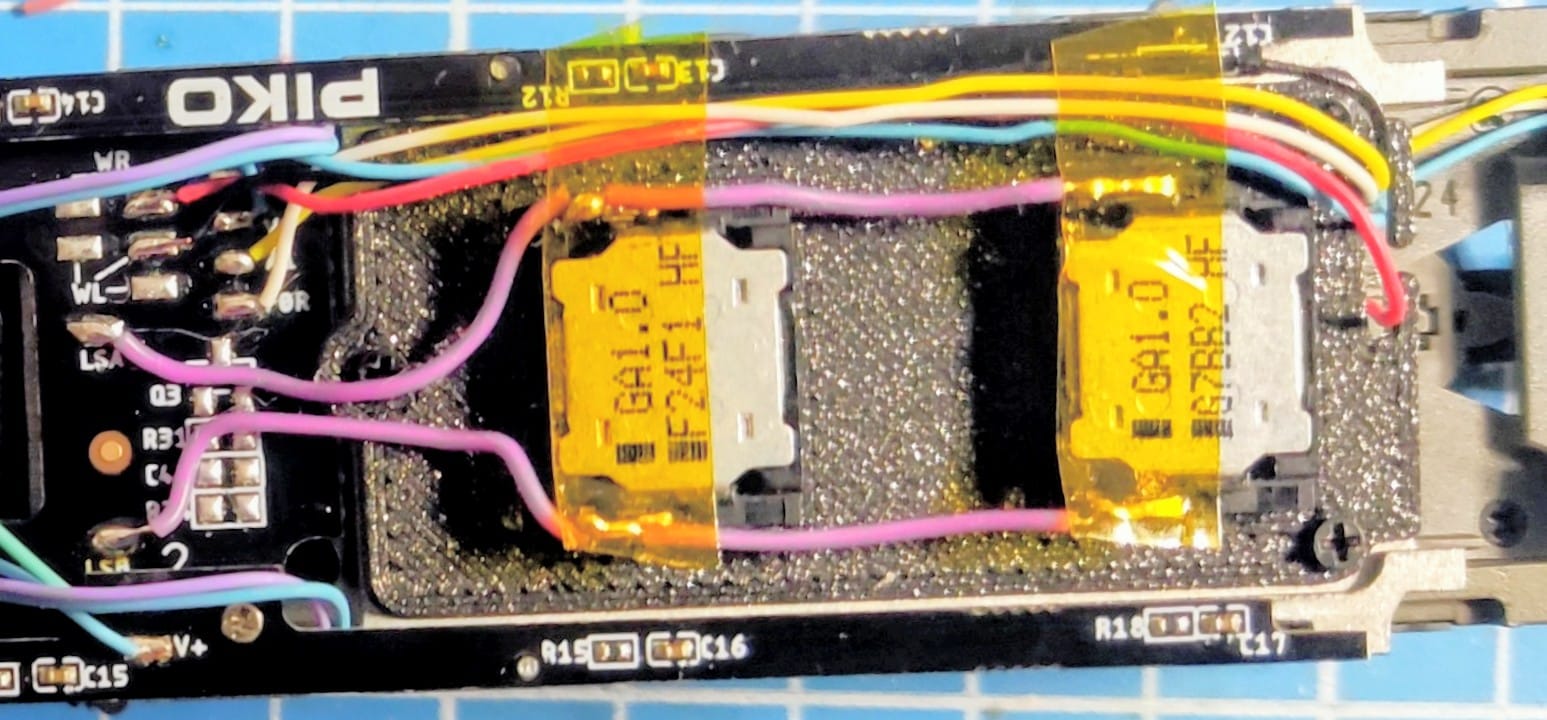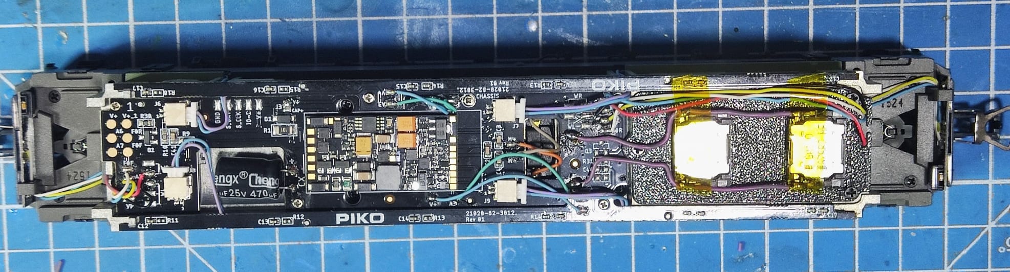 V zásade platí: pravá kolaj červený, pravý vývod na motor oranžový, ľavá kolaj čierny, ľavý vývod na motor šedý vodič... a tým pádom na predné svetlá ide biely a na zadné žltý vodič.