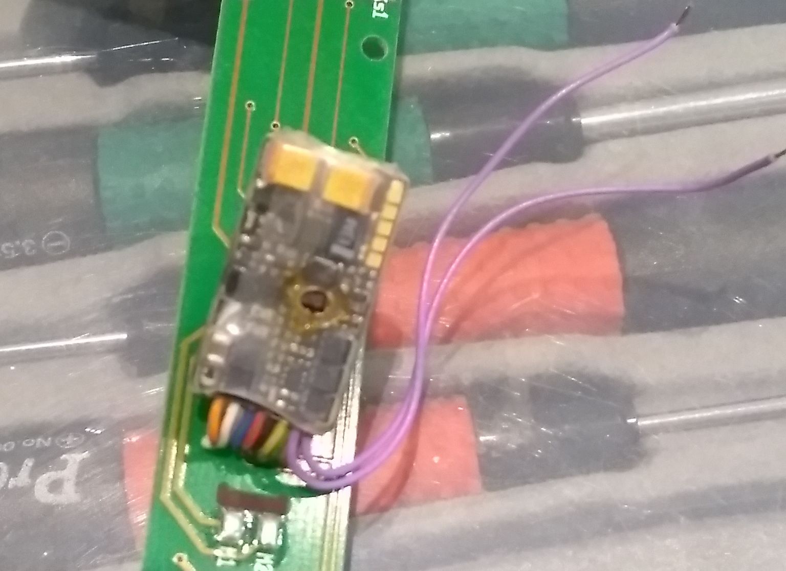 Tak jsem se po šichtě těšil, že se pomazlim s Hektorem PMT, v práci dneska jsem uřezal a upiloval závaží abych tam dostal dekodér, naletoval jsem drátky dle Houmrových vlaků na tišťák k výstupu patice a dal to do kupy s tim, že dráty jsem zaizoloval. Dobrý, nastavil jsem adresu, mašina jede svítí. ale nedalo mi to, krucifix škoda že mi s tim dekodérem nepřišla zimo kostka- jsem s tim počítal a furt mi to hlodalo v bolavý hlavě z rýmy a hnusnýho větru...no mi to nedalo a vybrabčil jsem z jedný berty reprák, no hovadskej(mtb) s velkým pokoveným magnetem, je to vůbec magnet to nevim, moc se to nechytalo na pixlu od barvy.... no a tak jsem to položil na šasí toho PMT hektůrka a jupí....vrčí z toho Jacek sound, paráda, chrochtám si. Nafrkal jsem pod tlačítka funkce a při popojíždění se stane to, že repráček padá na kolejničky a pěkně je propojí tím nemagnetem co má být magnet, z dekodérku se zahulí a lezou zvuky jako když přiletělo ufo a pak teda centrála Dr5000 se uráčí vypnout kolej.....