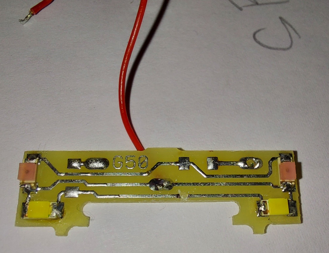 Aktuálny model od FISCHER MODELL má už osadenú DPS s PluX22 konektorom, ale svetlá rovnako blbo - 3 biele a 2 červené - pekne spolu spojené.