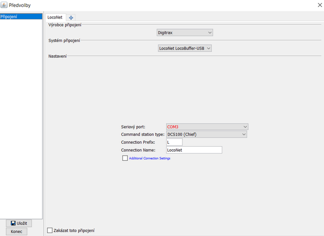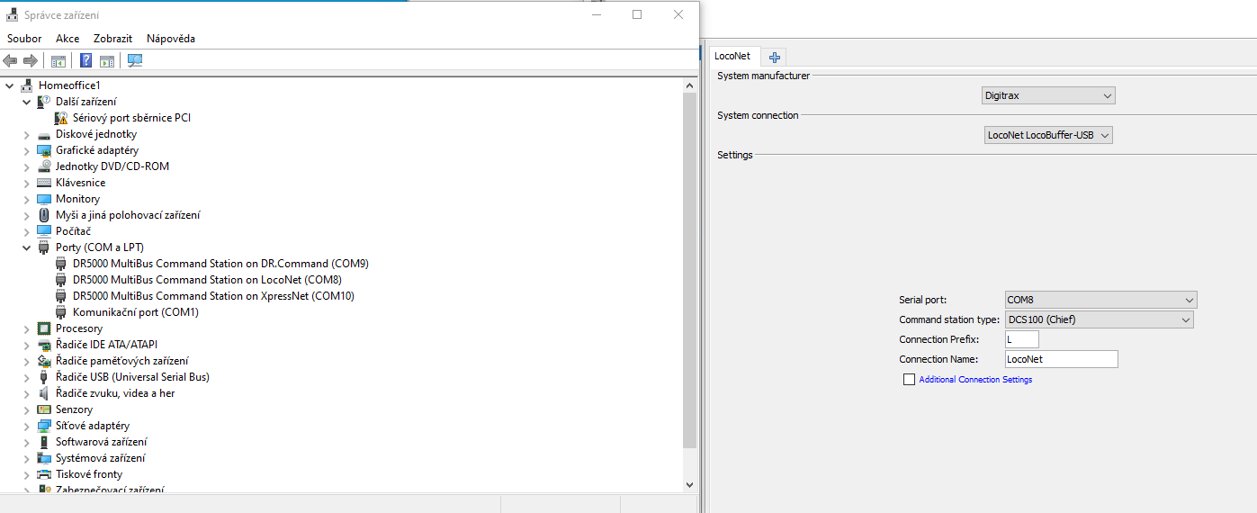 Pak spusti JMRI a nastav port DR5000 Loconet.