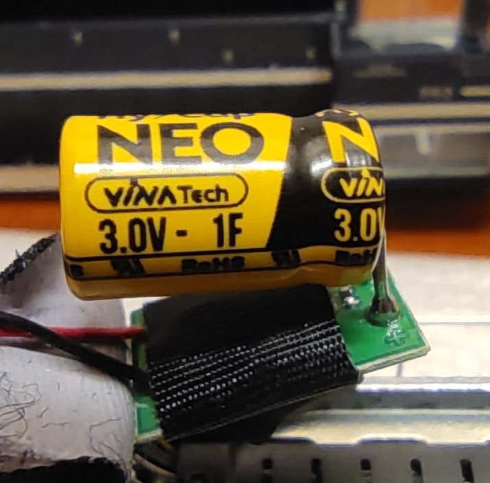 Spomina sa funkcny dekoder MX685. Uz som spominal ze je to klon motoroveho MX630. Tento typ nema pripravu na priame pripojenie kondenzatora. Preto potrebuje obvody okolo kondenzatora. Tie sa pripoja na spolocny (+) a GND. A tym je vsetko vybavene. A je uplne jedno, ze ci sa jedna o funkcny alebo motorovy dekoder. Princip je rovnaky...