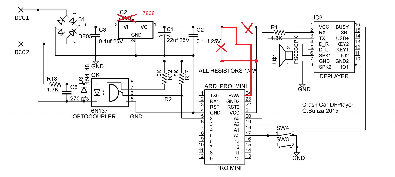 žereme z DCC, arduino živíme přes 7805 na VCC