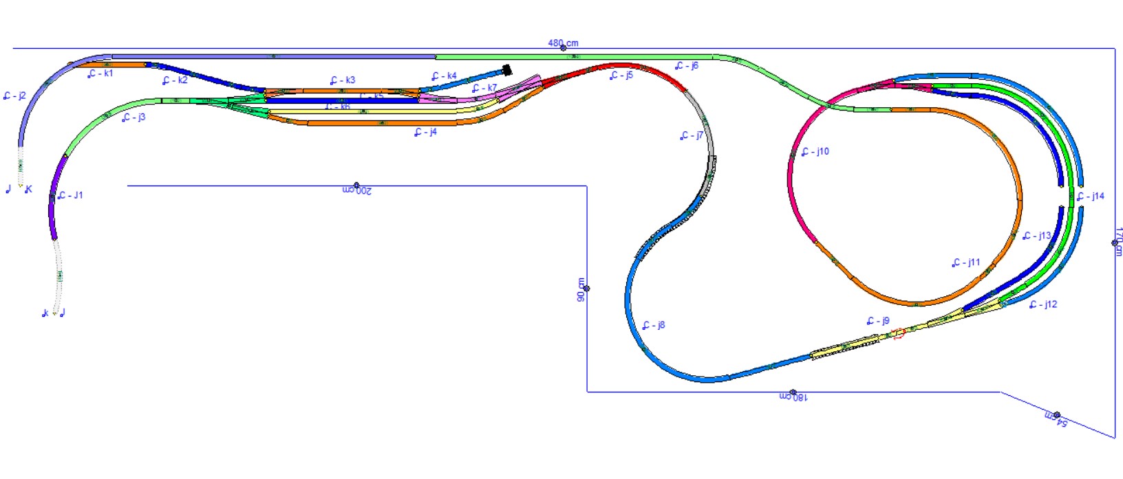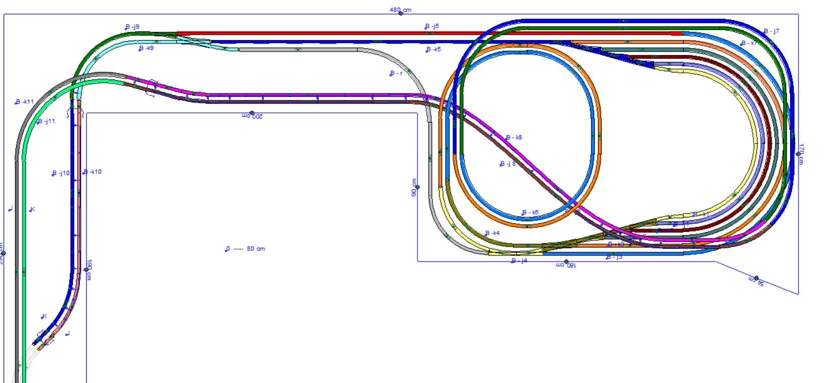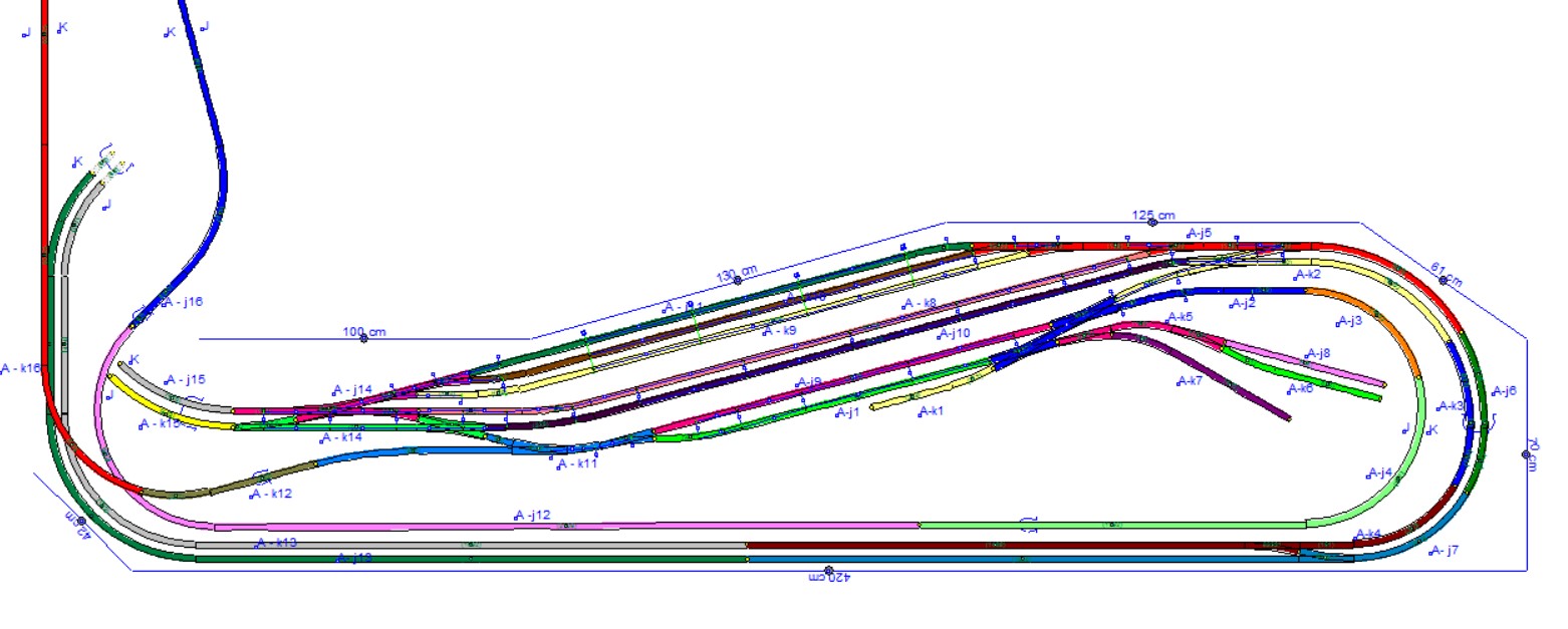 to čo bolo zobrazené bol priestor na uloženie detektorov obsadenia... a tam jednoducho neviem dodržať tie vzdialenosti od kolaje k DO :| trochu tam vidieť údaje ..napr. A - j4 , čo znamená zosilovač A ,koľajnica j, blok 4...atď,každá farba vyznačuje samostatný blok...