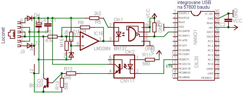 Proč vlastně používáš takhle nesymetrické optické oddělení? IMHO je rychlost Rx a Tx stejná. Chápu to u DCC, kde je směr od centrály k dekodérům o mnoho rychlejší než naopak, ale tady ta rychlost není velká ani v jednom směru a takže by to v pohodě stíhal PC817 (CNY17) s přiměřeným pull up odporem.zdeno píše:Pokladam za vhodne to opticky oddelit, je to stabilnejsi.