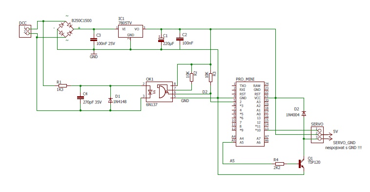 Navrhl jsem si vlastní tišťák pro DCC dekodér z Arduino Pro Mini podle schématu a programů Geoffa Bunzy (link níže).