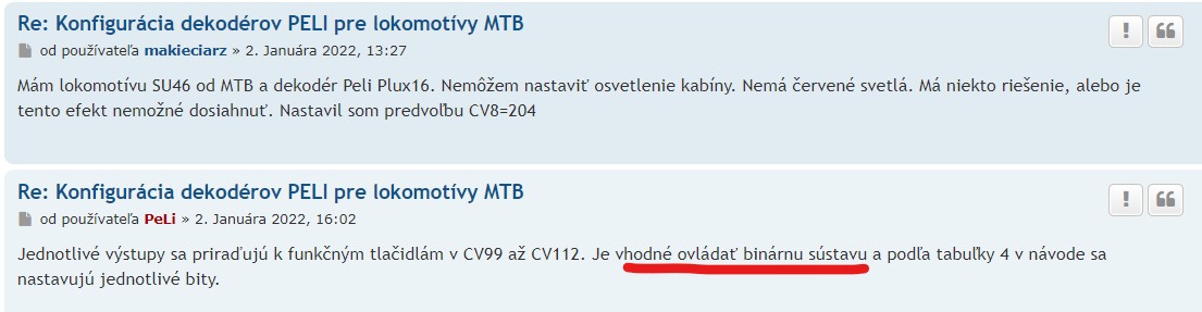Trainmaniak píše:Kolegové, máte nějaké zkušenosti s výše uvedenými dekodéry? Chtěl bych něco do starších mašin s 6pinem, neočekávám od toho nic extra, jen aby to dobře jezdilo a svítilo, případně aby se dal snížit jas světel. Co jsem tak vypozoroval, tak produkty PeLi jsou spíše chválené, tudíž bych se těm dekodérům asi ani nebránil. Mám zatím jeden Zimo MX622N a jeden funkční MX671N. Jsou dekodéry PeLi srovnatelné? Předem díky za informace.