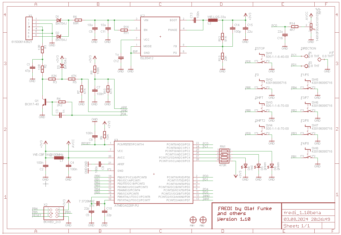dnes jsem si pokusně předělal jednoho FREDa na 16 funkcí. Na začátku byla "Pražská" verze. Tedy ta, co má ve sloupečku 6 tlačítek a inkrementál. Verze hardware je 1.7.