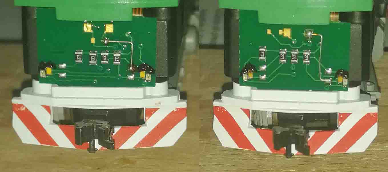 Velice jednoduchá úprava, pokud jsou osazeny cmos tranzistory a smd odpory. U starších lokomotiv jsou, na novější se musí dosadit. To už popisoval pan Horák. U mě to bylo tak napůl, někde odpory byly, chyběl jen tranzistor.