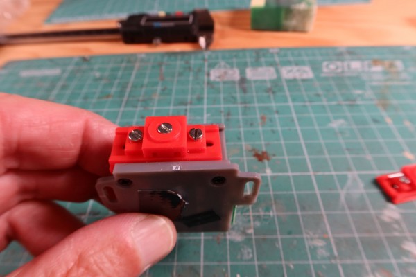 Mpx je nastaven na střední zdvih, tj. cca 6mm. Při pohybu vždy dochází k malým překmitům na obě strany. Proto je šířka štěrbiny držáku 7mm, aby nedocházelo k zablokování v krajních polohách. Za předpokladu vystředění otvoru spojovací tyče a osy štěrbiny stačí pro seřízení několikrát přejet obě polohy přestavníku ještě před dotažením kleštiny, aby si táhlo „našlo“ svoje krajní polohy samo.