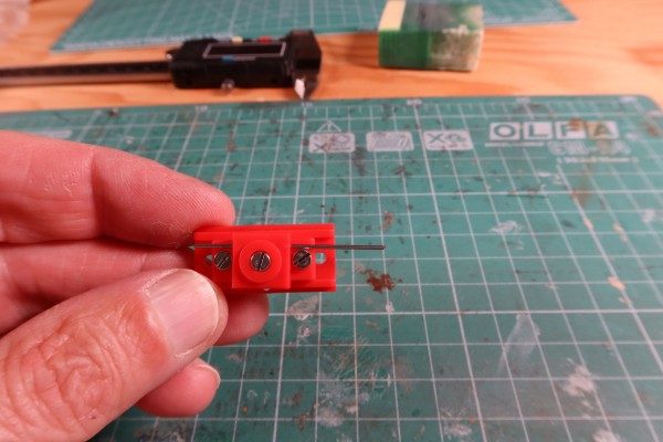 • Kleština se přišroubuje zpět v otočené pozici o 90° tak, aby byl výřez pro strunu 0,8mm rovnoběžně se základnou.