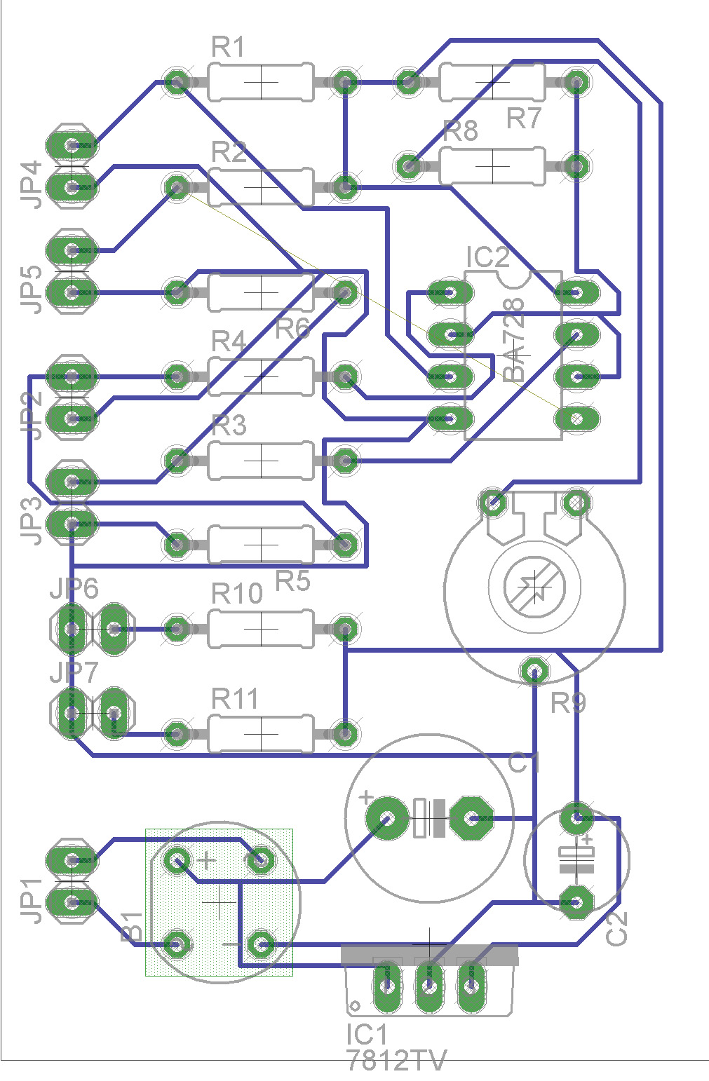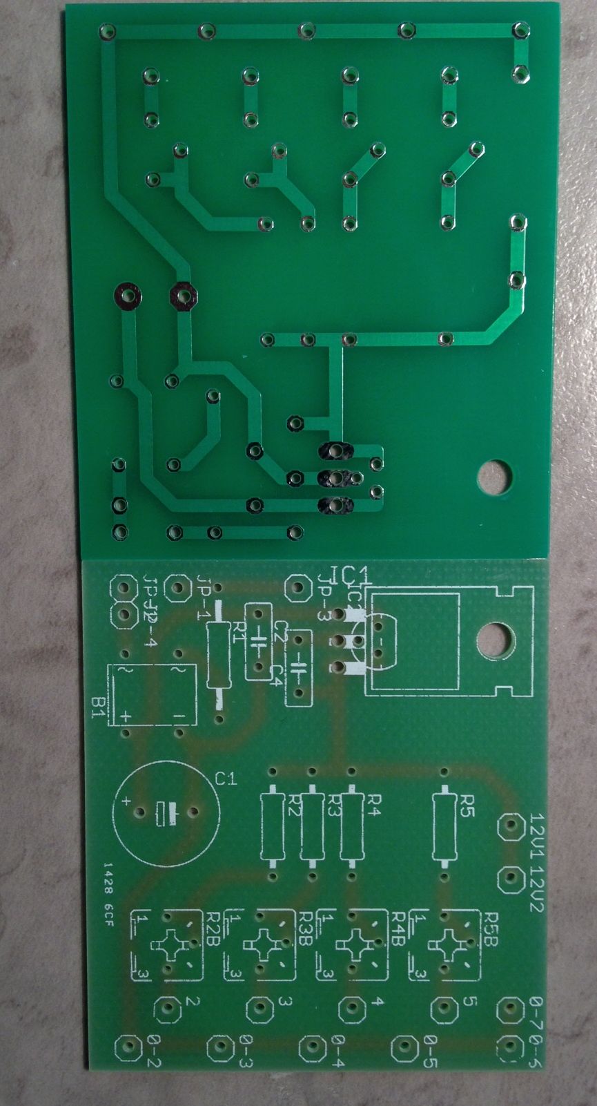 Asi nemá cenu ti říkat, že poloha kondenzátoru C1 není úplně vhodná vzhledem k filtraci napájení a že ti kolem 7812 scházejí keramické kondenzátory proti rozkmitání a cesta od nožičky 5 k odporu R2.