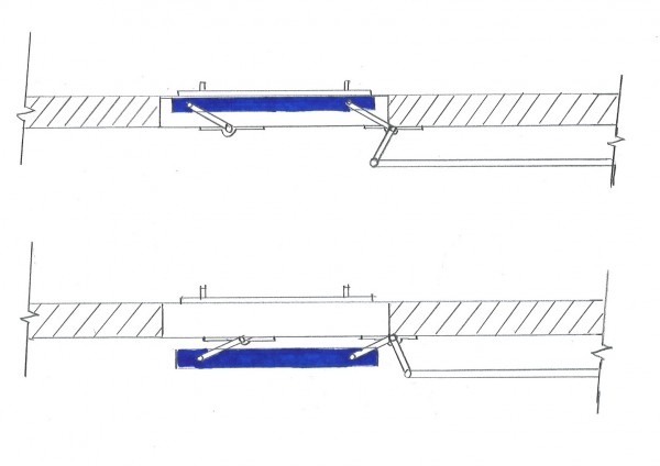 Miloš Pavlát píše:Pro ještě nižší zastavbovou výšku lze místo pantu použít pákový mechanizmus pro přiblížení (horní poloha) a oddálení (dolní poloha) magnetu.