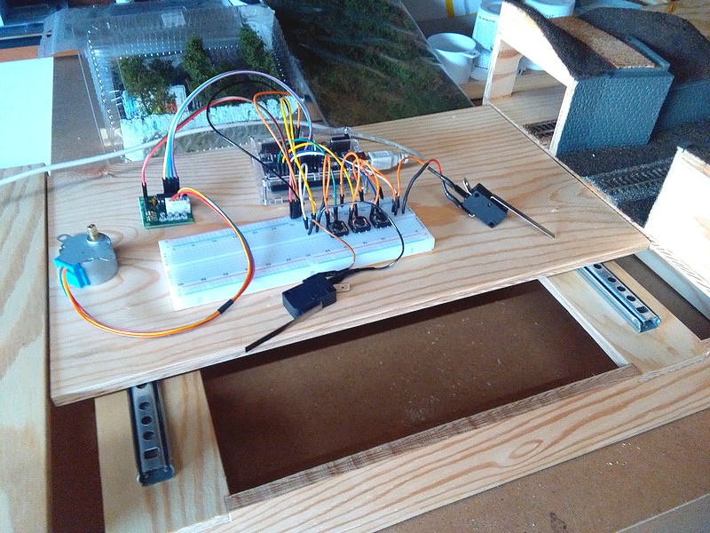 Přestava je 3 tlačítka. První zajistí najetí do krajní polohy na mikrospínač což bude výchozí poloha. Další tlačítko bude posun o rozteč kolejí doprava a poslední tlačítko posun o rozteč kolejí doleva. Převod na posuv bude závitová tyč nebo ozubený řemen. Pokud se dílo podaří bude namontováno na Nudli TT společně s ovládáním tří serv. Zatím se pomalu prokousávám s programováním Arduina , studiem elektriky a potom přijde na řadu mechanika. Znalce v oboru prosím o slitování , jsem jen hračička samouk.