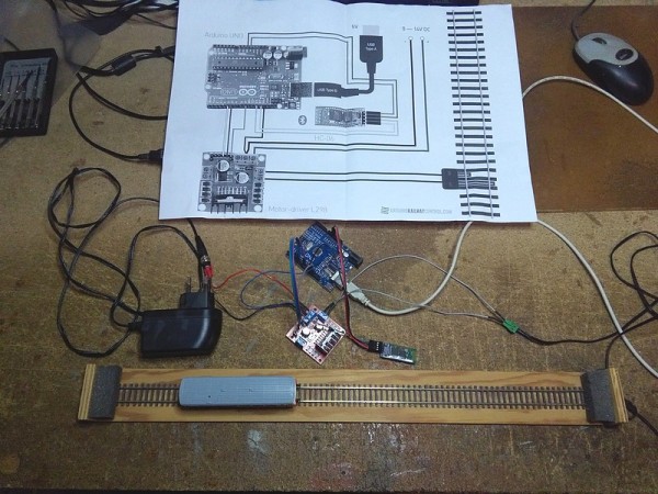 Sestavil jsem první "zařízení". Program na androidu "Arduino Train Junior Lite" , deska Arduino UNO R3 (klon) , modul bluetooth HC-06 , PWM modul L298N , zdroj 12V= , kus koleje , motoráček M152 ( TT ). Jak zapojit je hezky vyobrazeno na jejich stránkách.
