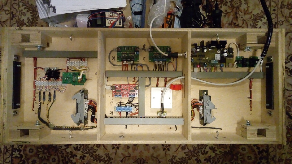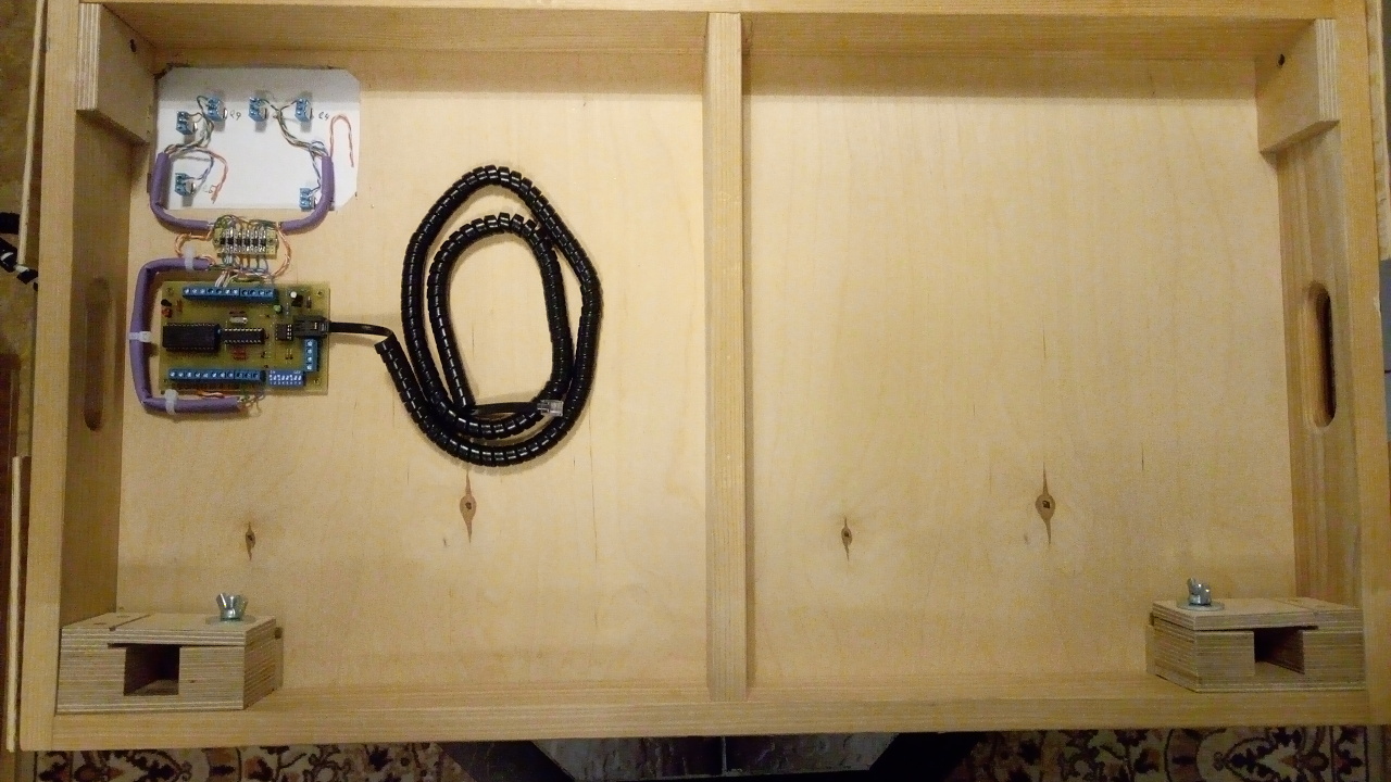 A ještě pohled pod ovládací pulty, hlavní a pomocný - pro posunující zálohu.