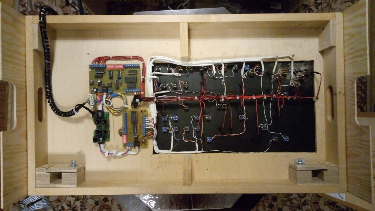 Použil jsem konektory DIN 7 kolíků. Rozvod DCC (J a K) a napájení příslušenství 12V AC. Takže obsazeny jsou čtyři kolíky. Tři zbývají, kdyby něco.