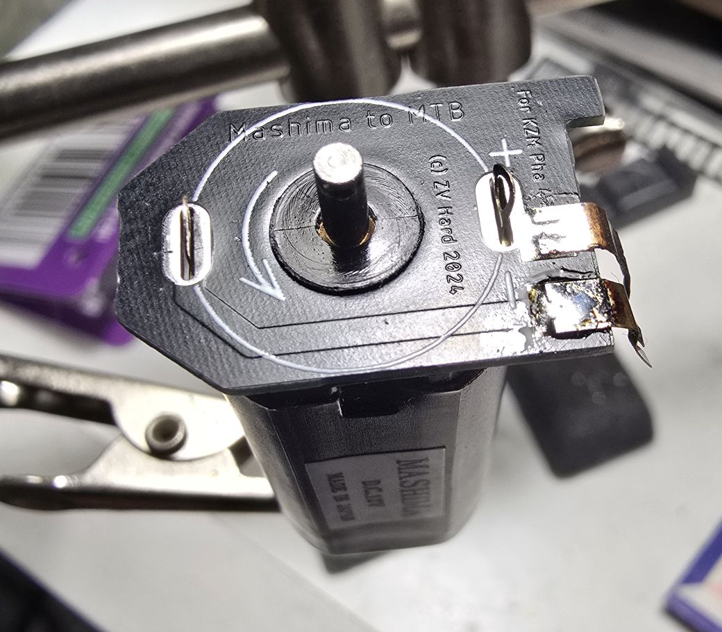 Kdyz uz tam nekdo meni motor a chce aby masina jezdila "obracene" nez zamyslel vyrobce tak je to celkem snadno resitelne otocenim plosnaku v masine. PS> Neoveroval jsem zda je opravdu symetricky uprostred. Pokud ne tak pribude trosku brouseni ...