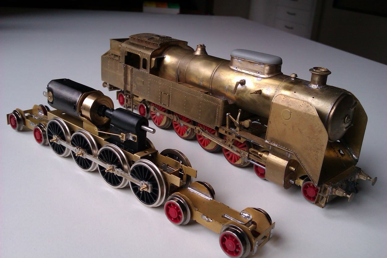 Jasný, další mašina co se motala na Těšnově ... Nejspíš to bude 044, ale nemám moc fotek. Taky se chystám ( "výhledově" :D ) na 464.1 a 464.2 až bude vychytán lept. Masivní mosaz jsem jednoduše přidělal šroubkem a matičkami v případě písečníků, pojišťováky maj vyřízlej závit a šroubek je zevnitř kotle. Komín je odvrtán a připájen za pomoci mini hořáku. Ten hotovej kotel v sobě ještě nemá měď trubku, je to stará verze. Nová mě bude čekat teďka.