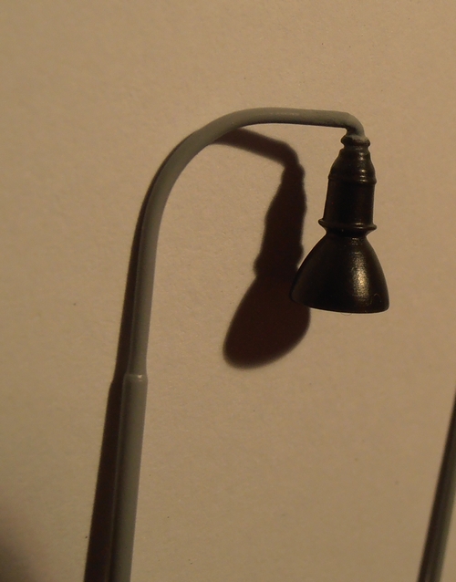 Na fotke je pre porovnanie TTčková. Výška lampy bez postavca zapusteného do zeme je 160mm. Cena bude 4€/ks. Odolnosť je dosť vysoká vzhľadom k tomu že je to robustné merítko a ja ich staviam aj na odolnosť. Proporcionálne sú čo najbližšie k reálu, obzvlášť teleso svietidla. Teleskop stĺpu je kompromis čo sa týka priemerov trubiek, som obmedzený tým čo ponúka trh a vzájomnou kompatibilitou trubičiek. Myslím ale že nič nieje také od veci že by to lúpalo oči.