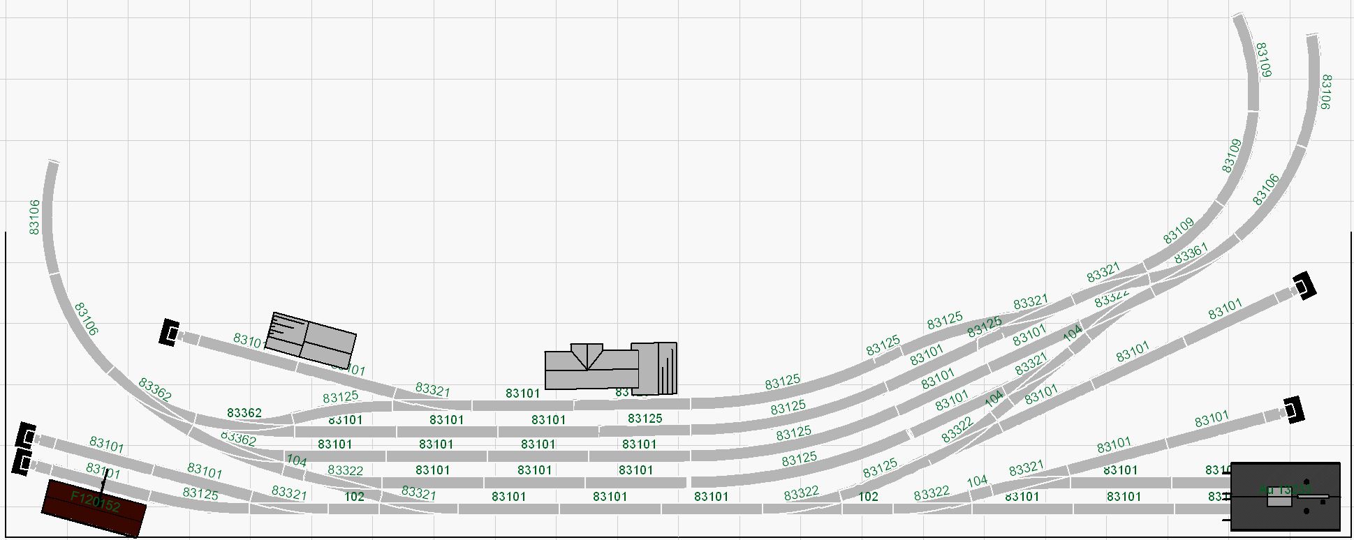 Spíš škoda, že to je skládaný z EW1.. Kdyby to mohlo být z EW2, tak by to vypadalo mnohem lépe - a jak vidno, v tomto případě by se ani moc nezkrátily délky kolejí, ve většině případů tu je použito ew1 + toho prcka pro dorovnání roztečí kolejí..