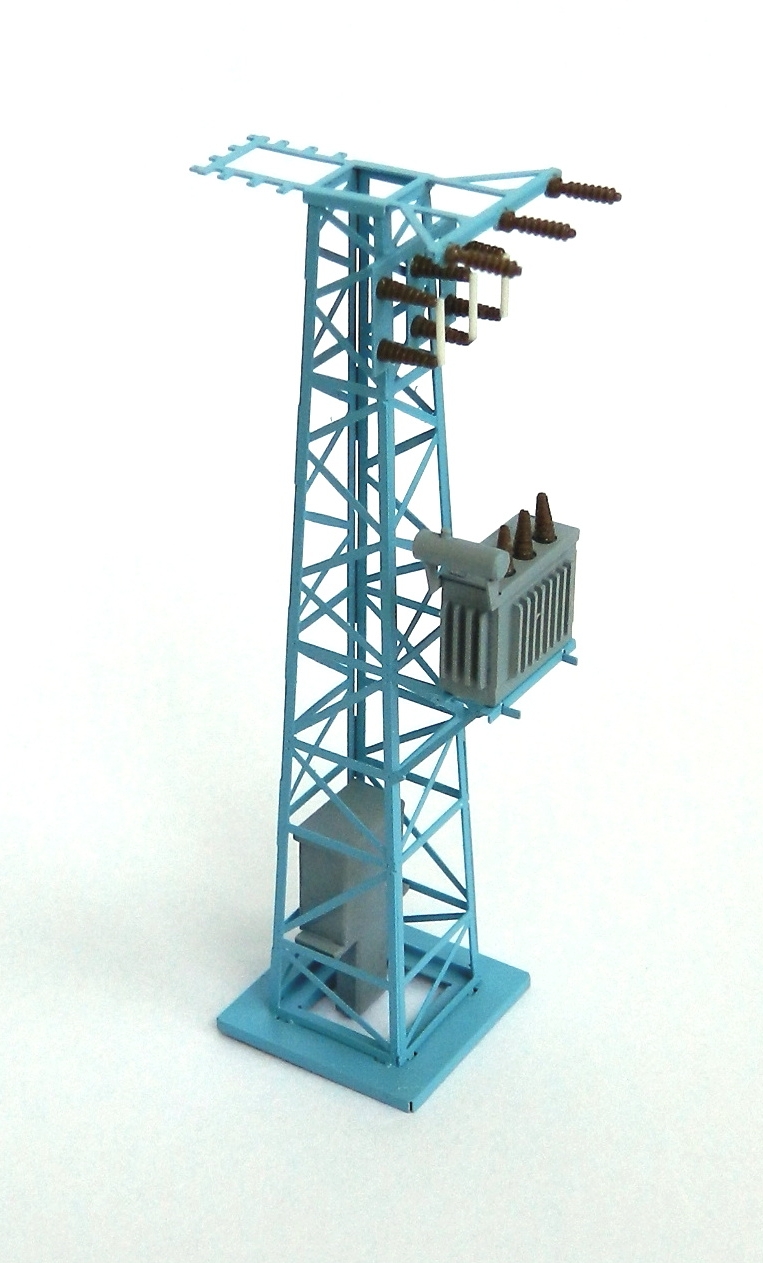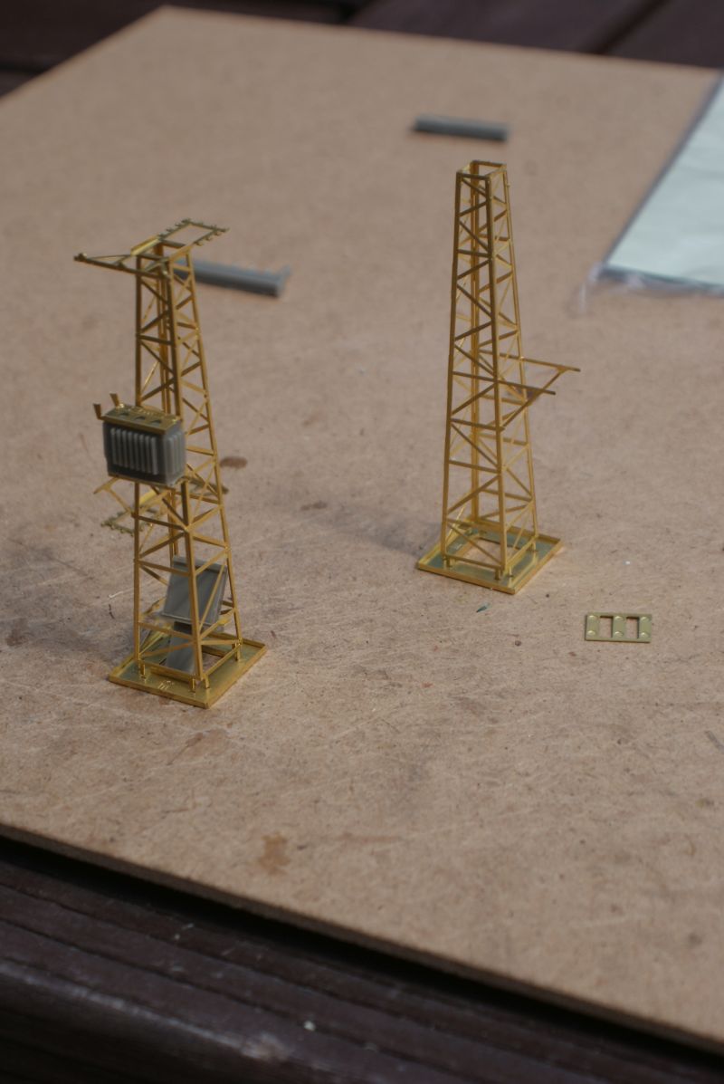 Velmi dobrá stavebnice, kombinace leptu s odlitky se skládá skoro sama, žádné záludnosti. Stejný model se připravuje i ve velikosti H0. Pár drobností jsem tam doplnil podle vlastní chuti (vodiče mezi izolátory, svislé trubky a výstražné tabulky).