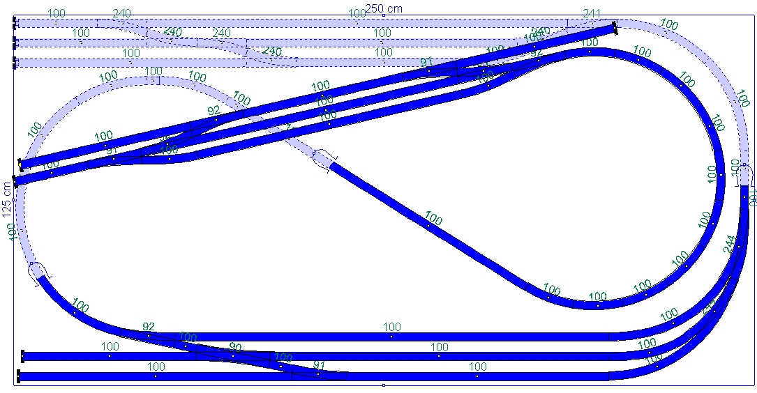 No a kdybys vynechal i ten skryťák, tak ti vznikne trať odněkud někam, kde si s jednou nebo dvěma mašinkami a šesti nebo osmi vagónky parádně zajezdíš podle jízdního řádu včetně odpovídajícího posunu při přejíždění na opačný konec vlaku v obou stanicích a napravo dole můžeš místo oblouku do tunelu prozatím zřídit šturc, z něhož v dalším vývoji - až na to budeš mít místo a peníze a jestli mezitím neztratíš elán - později můžeš pokračovat návazností na budoucí sousední modul.