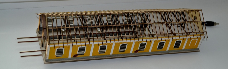 Mam ešte jednu otazku. Ako lepite tie pasiky eternitu? Ja ich lepim max po 4ks spolu (aby sa neskrutili) no a potom ich spajam do kompletu 35 pasikov na jednu polovičku strechy. Videl som aj navod s obostrannou paskou, to je naprd skušal som ale držalo slabo. No tie odvetrávacie kominky urobím takto. Použijem 4,5mm medenu trubičku(brčko má 5mm)narežem na danu dlžku a uhol strechy. Na strechu nalepim valcove drevene količky s priemerom ktory bude totožny s vnutornym priemerom medenej trubičky. Kuželovu strechu spravym z diabolky 5,5mm Gammo medenej.Zrežem kuželovu čast diabolky upravím,nalepím nožičky či čo to je a prilepím to cele na medenu trubičku. Takto všetky tie kominky nalepim na predpripravene drevene valcove količky na streche.