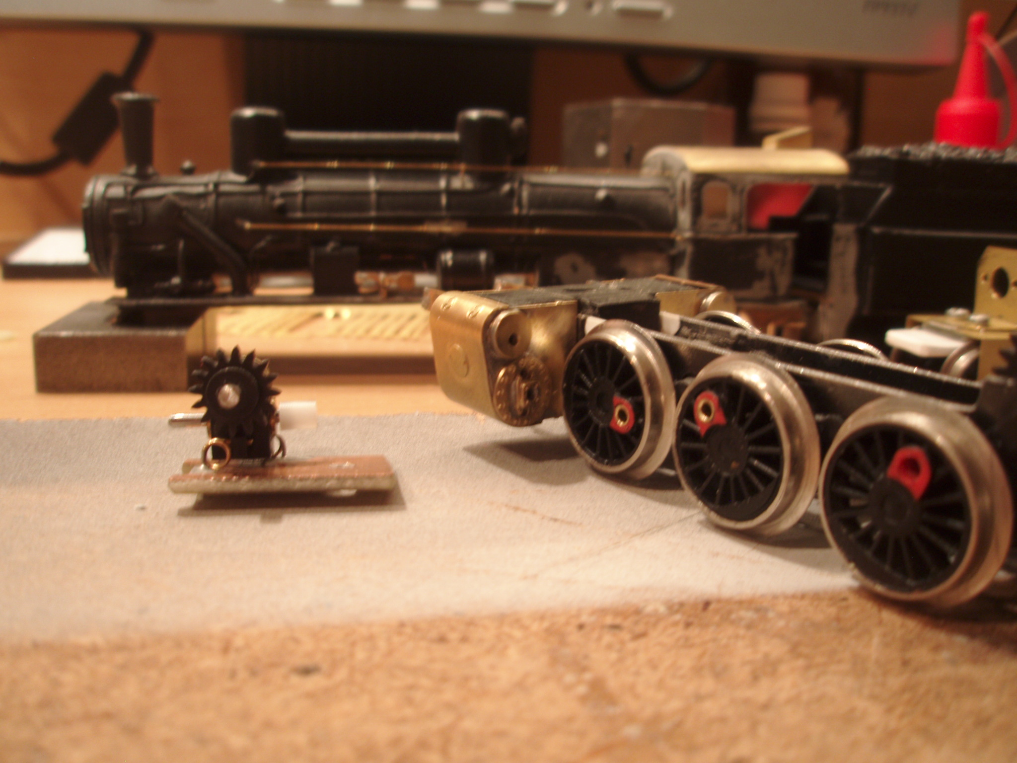 Pokračuji ve stavbě, zatím skládám díly rozvodu a další drobotinu jako pružnice, konzolu ochozu, čepy spojnice, a klacky. Je hotový pluh a dvojkolí mají nalisovaná mosazná pouzdra pro čepy, protože ty původní jsou tak velké, že by ze spojnice nebylo nic moc vidět.
