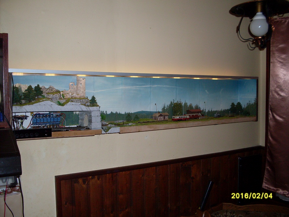 Vytrínové kolejiště má rozměry 160 x 16 x 30 cm a tak tady je pro představu umístění elektroniky v mém případě do dost omezeného prostoru:
