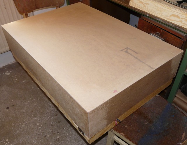Vyrobeno ze sololitu a smrkových latí. Lepeno Dispercolem. Místo uložení na palandě u stropu v dílně. :wink: