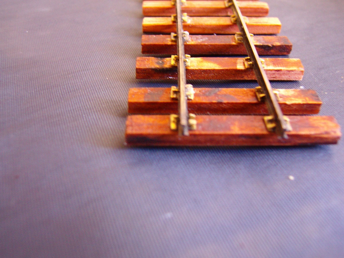 Ako pražce mi slúži lišta 3x5 mm z borovice, smreku atď. Lišty som napustil moridlom. Vzdialenosti medzi podvalmi sú podľa príručiek o stavbe úzkorozchodných železníc. Odpovedá to vzdialenosti okolo 600 mm. Dám zopár obrázkov pre inšpiráciu. Pokiaľ by niekto chcel podrobnosti postupu, nech napíše, odpoviem.