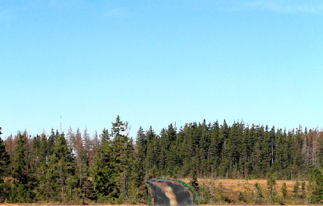 Z hotových pozadí mi tam nic nepasovalo, takže rozsáhlé pátrání na netu po panoramatických fotkách v dostatečně velkém rozlišení. Pak to tak nějak smysluplně poskládat, dát do potřebné velikosti a domalovat aspoň pokračování cest (pro mne problém). Pokud si vzpomínám, tak jsem si vystačil jen s malováním ve WIN a pro tisk jsem použil Posterizu. Současné pozadí je stále pracovní - tiskl jsem toho hafo než jsem se dopracoval ke kloudnému výsledku, takže mi nevadilo, že tisk není díky zaschlým tryskám v inkoustovce moc kvalitní. Mám to v plánu přetisknout, ale předtím chci zkusit předělat aspoň tu jednu dokreslenou cestu.