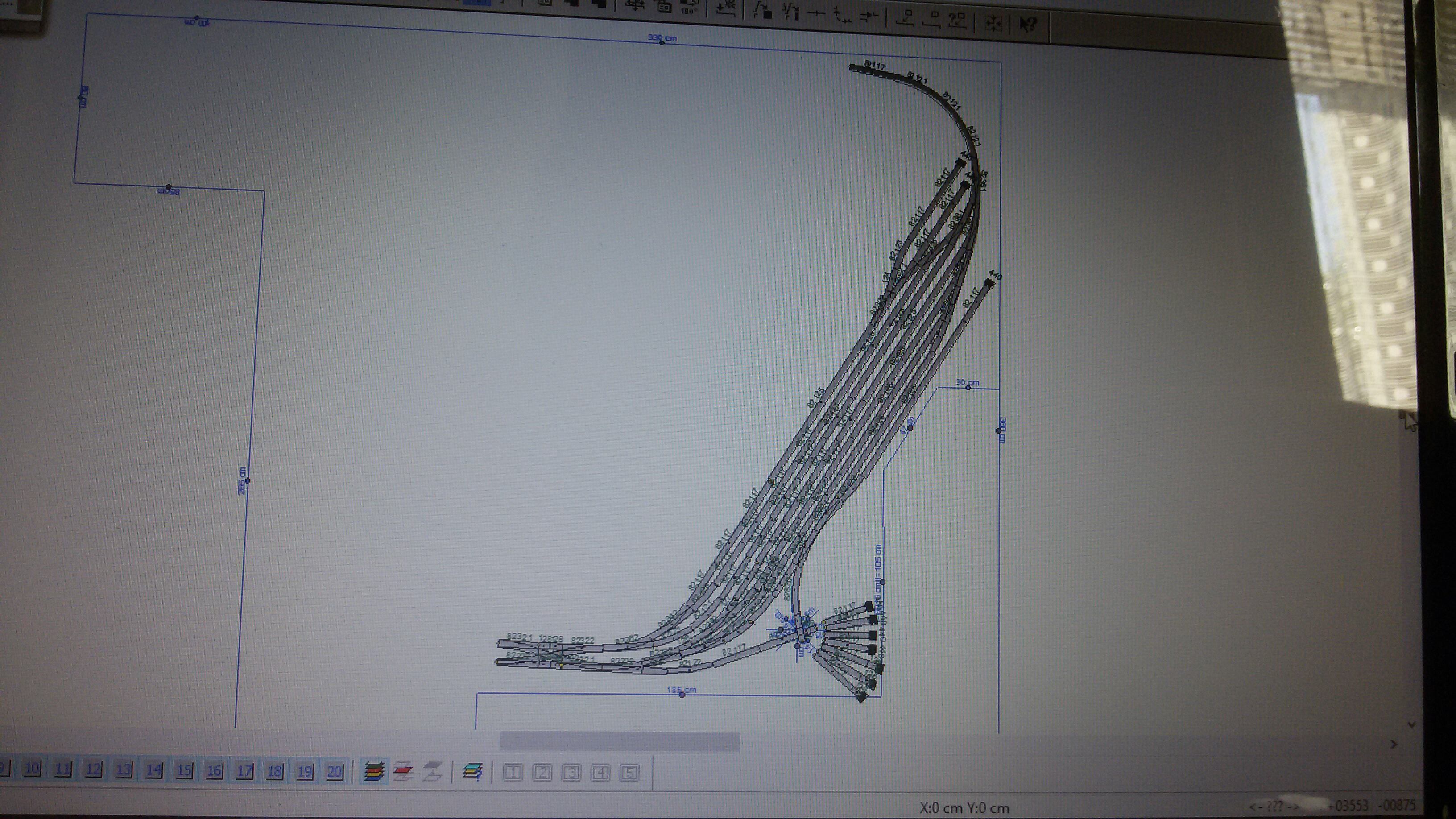 Takže, začal jsem s plánování v Wintracku. Už jsem se do toho dostal a mám téměř hotový Železný Brod. Návrh jsem předělal, skoro od základů, minimálně jsem předělal i stůl. Fotka je opravdu fotka, protože notebook je mamky a ja bych to nestihl vyscreenshotit a poslat. Stejně je to jen miniukázka, kompletní nákres bude už samozřejmě normální. V plánu jsou teda 3 nádraží ( tohle, semily a Malá skála), minivlečka se Semil a dál už asi nic. Ještě uvidím. Možná že tam někde dàm ty doly ale jen pokud by tam bylo hluché místo. A upravil jsem přístup. Nádrażí budou dostupné z kraje, jinak mont. otvory a udělal jsem takovou uličku okolo. Je to ten prostor pod toćnou a vpravo od točny. Je tam trošku špatně, tady to konćí u křížení, ale má to být po celé délce hrany, takže se dostanu ke všem nádražím bez podlízání kusu stolu. Jinak mam tam prostor od stěny nějakych 55cm. To by mělo být ok. Su hubený
